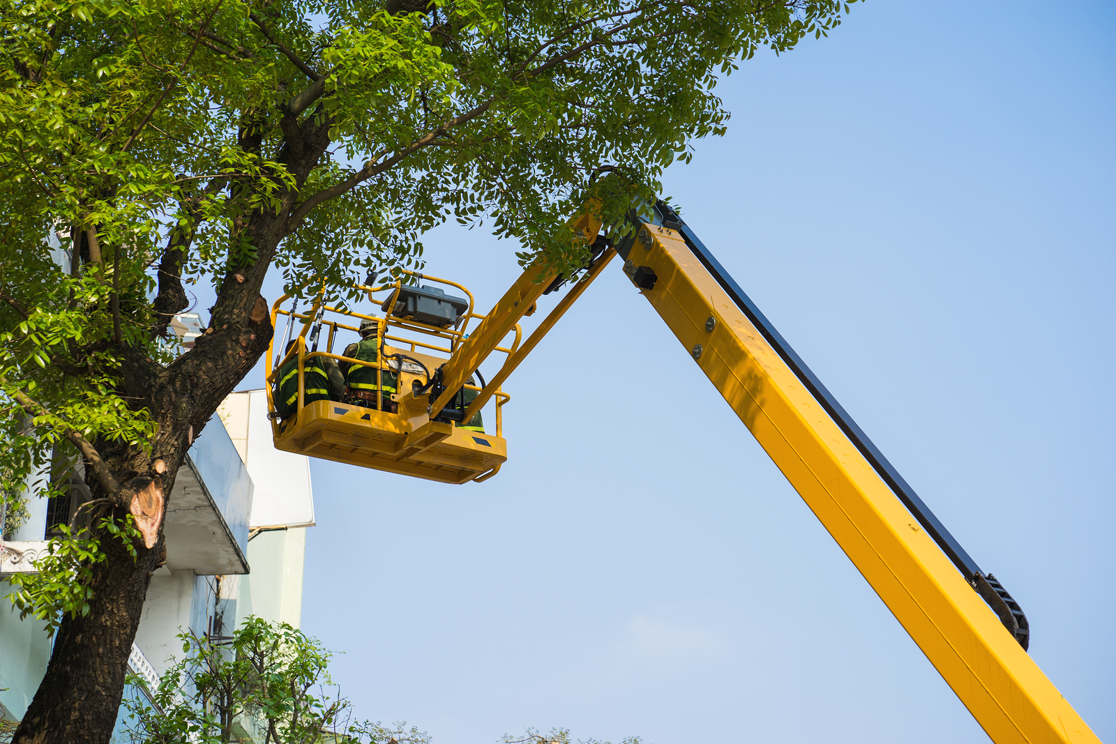 Il taglio di albero in proprietà privata viene fatto con l'uso di piattaforme aeree adeguate.