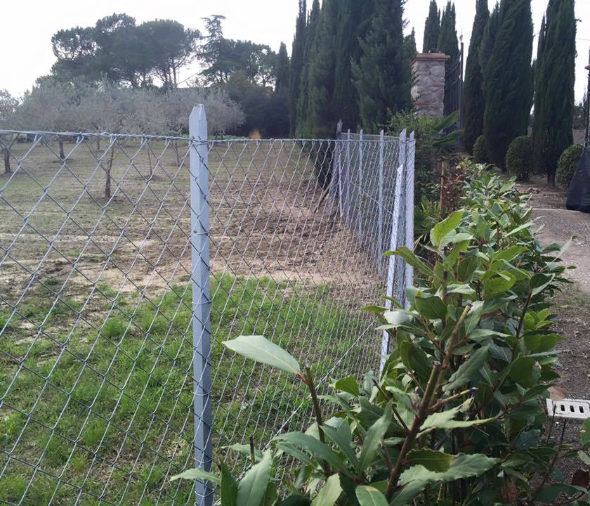 - Recinzione con rete elettrosaldata zincata e pali di ferro zincati o pali in legno di castagno.